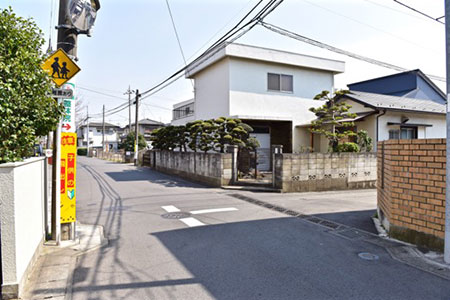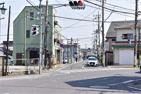 8. 右に美容室、右前方にはんこ屋、左に床屋のある五叉路を直進(床屋側の道へ)