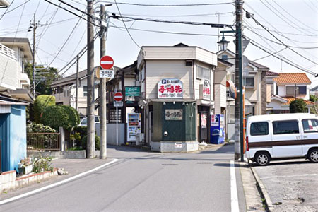 3. バス停先の中華店「東洋軒」左脇の路地へ